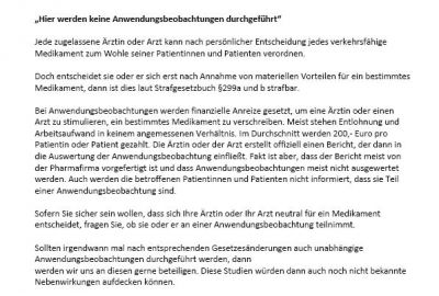 Gemeinsam mit unserem Mitglied Dr. Walter Dresch haben wir ein Plakat mit Ergänzungen zu Anwendungsbeobachtungen erstellt. Es soll PatientInnen darüber informieren, dass diese Praxis auf die...