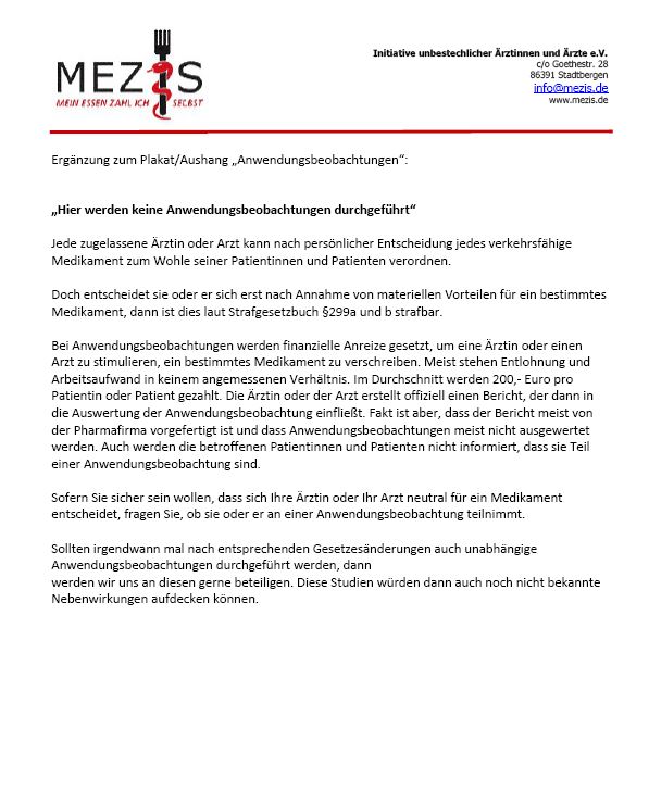 Ergänzende Erklärungen zum Plakat „KEINE Anwendungsbeobachtungen“