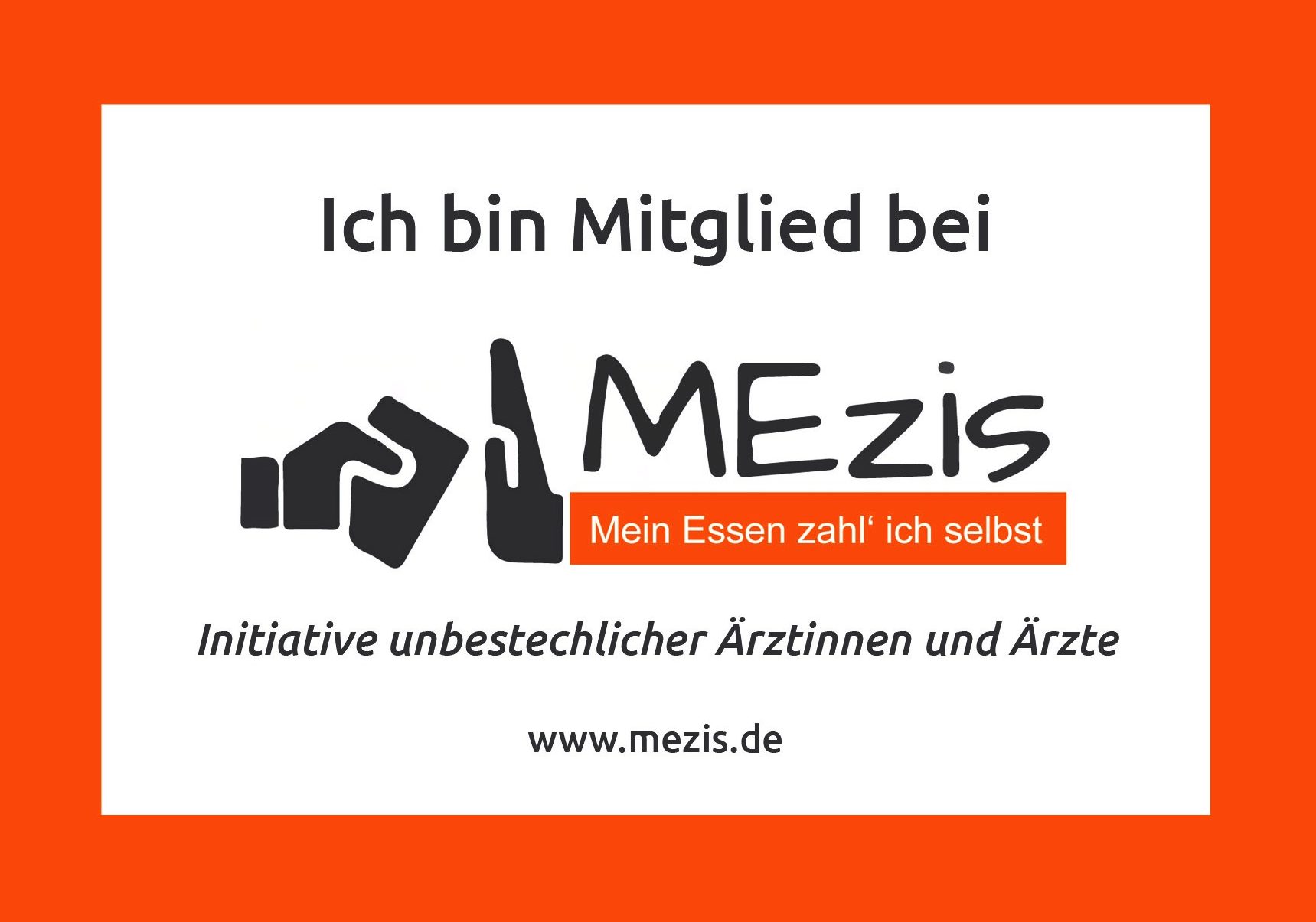 Den Aufkleber (s/w – siehe pdf) “Mitglied bei MEZIS” für Auto, Praxis, Stationszimmer oder… können Sie für 1 Euro bestellen. Oder Sie können mit der Druckvorlage ein Schild z.B. für ihre Praxis erstellen.